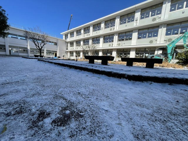 週末から降り続いた雪が残る南小学校です。午前中には雪を触って遊んだり、自然のものを使った造形の授業をしたりと、めったにない雪を楽しみ、活用する様子が見られました。日陰にはまだ少し雪が残っている状況で、今夜からの冷え込みでまた明日の朝、道路が凍っているかもしれません。十分に気をつけて登校してください。