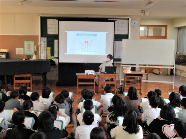 4年生が、歯の健康をテーマに学校保健委員会を行いました。講師は、学校歯科医の先生です。「歯は一生の宝物」と題して、お話しいただきました。