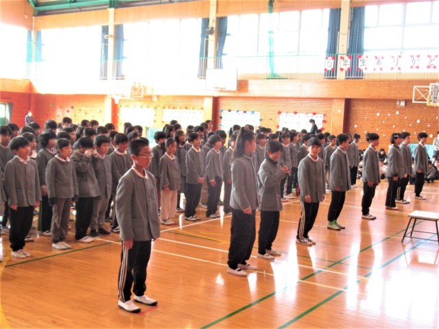4年生の出し物です。代表の子供たちからの感謝の言葉と全員合唱「おひさまになって」を歌いました。