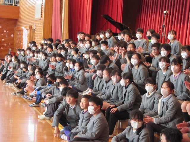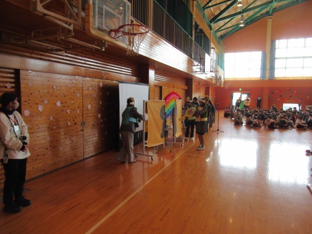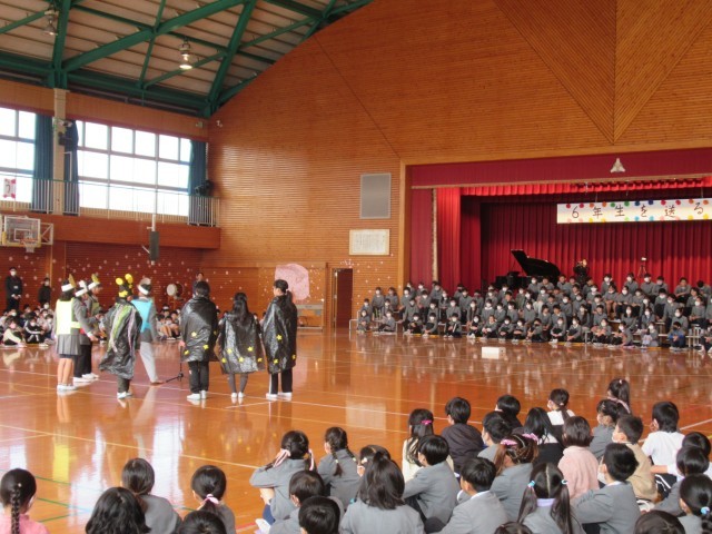 それぞれの学年の出し物が終わると、未来へのとびらを開くカギがそろい、とびらを開けることができました。6年生は、残り19日間。小学校での生活を楽しみつつ、中学校に向けてこのとびらから未来に歩んでほしいと思います。
