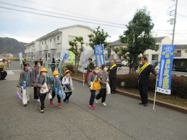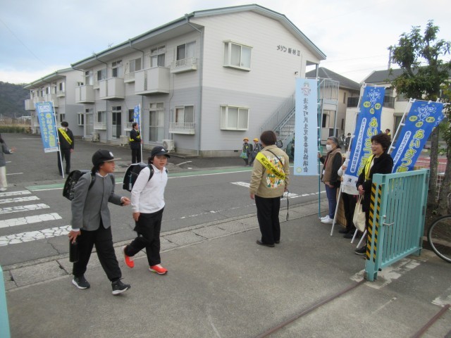子供たちは、いつもの様子と違うことに驚きつつも、元気にあいさつをする姿が見られ、とても清々しい朝となりました。