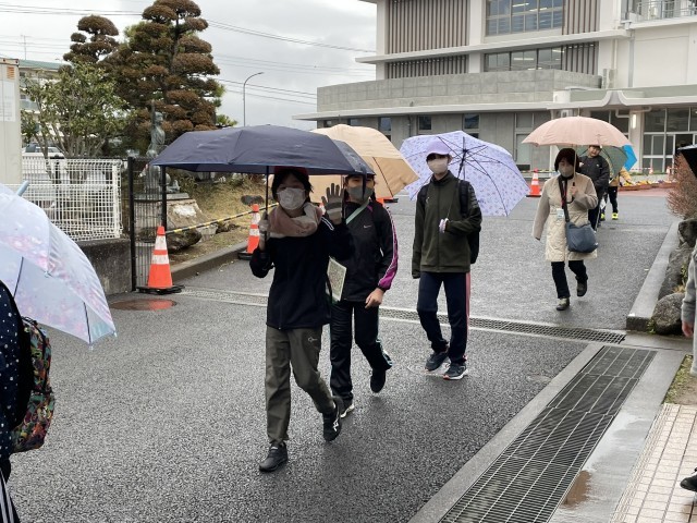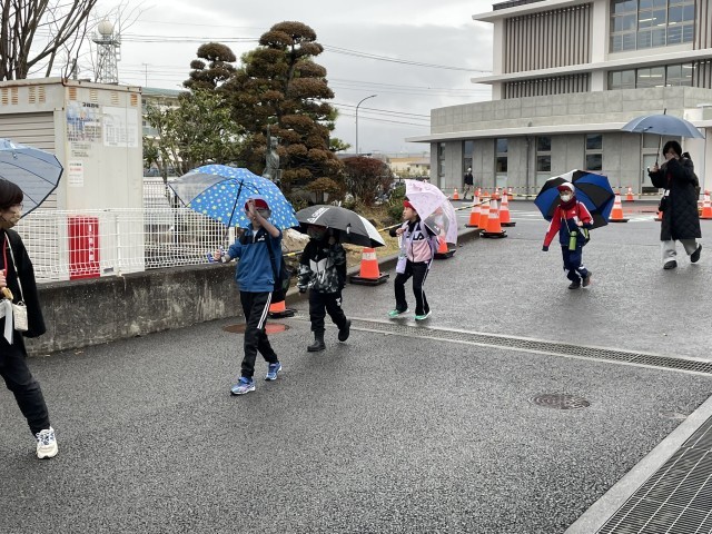 今日はなかよしの校外学習です。バスと電車を乗り継いで、沼津港を目指します。昨日までの授業では、バスに乗った時の運賃の支払い方や、電車の切符の買い方などを何度も繰り返し練習してきました。果たしてうまくいくでしょうか。あいにくの雨模様ですが、楽しみと緊張が交錯する表情を見せながら、元気に出発していきました。
