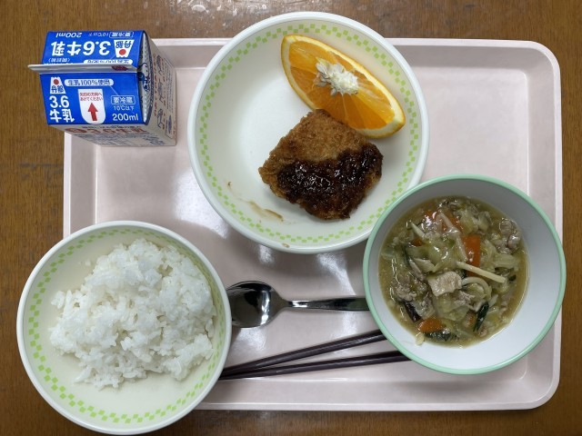 今日は、ここ数日の暖かさから一転、冷たい雨の一日となりました。今日の給食は八宝菜でした。干しシイタケを戻した水以外は、野菜から出た水分だけで仕上げたそうです。とろみもあり体にしみるおいしさでした。