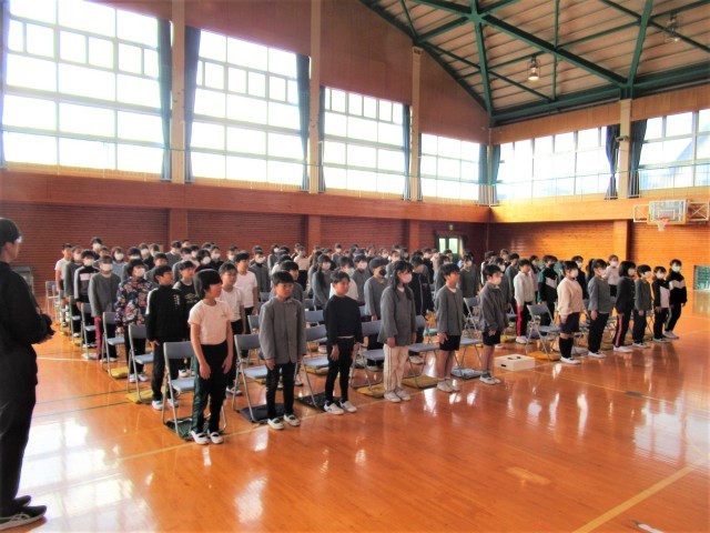 5年生も卒業式の練習を始めました。5年生は主役ではなく、いわゆる「脇役」ですが、主役の6年生をを引き立たせるためには、なくてはならない存在です。今日は、座っている時の姿勢、席から立ち上がるときの所作、起立の姿勢など、緊張の面持ちで練習に取り組んでいました。一人一人が真剣に、一生懸命に取り組んでいる様子が伝わってきました。