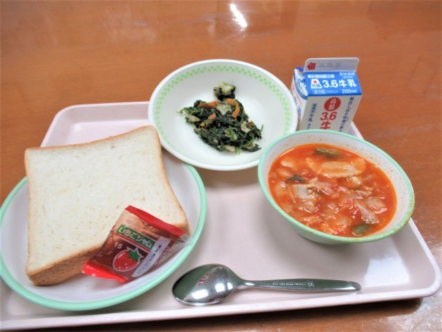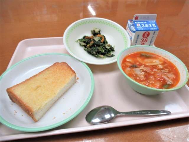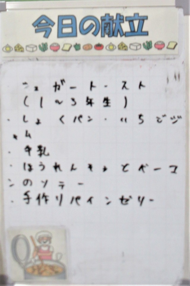 今日は、低学年がシュガートースト。高学年が食パンといちごジャムでした。