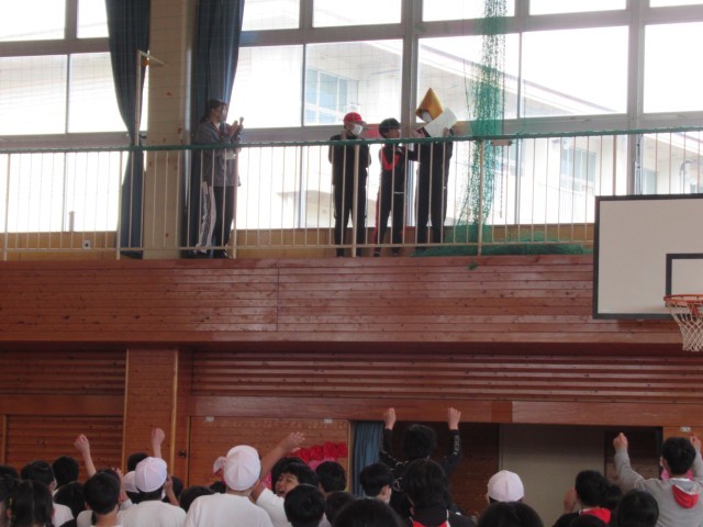 某テレビ番組で行われた「未成年の主張」を少しまねして、「小学6年生の主張?」を体育館で行っていました。