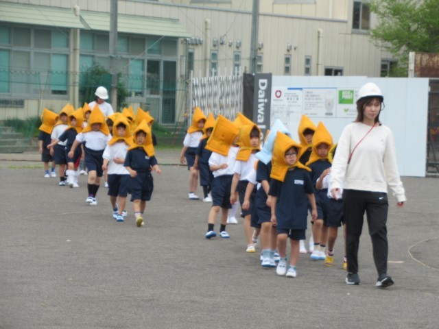 約600人の子供たちが、静かに、慌てずに、先生の話をよく聞いて素早く避難することができました。小学校での初めての避難訓練に参加した1年生も立派な態度で、取り組むことができました。