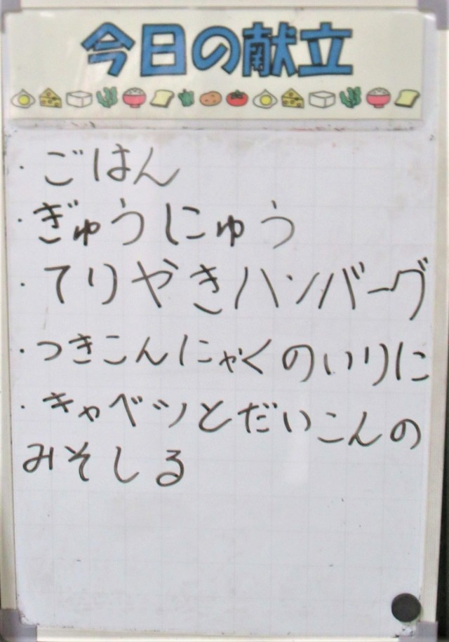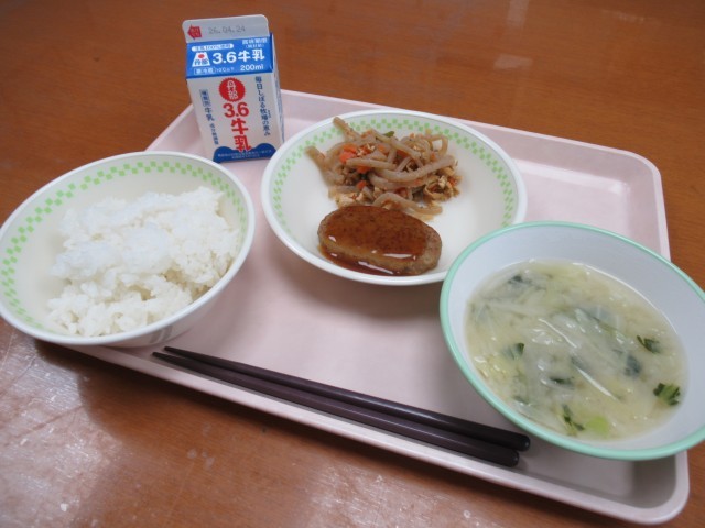 今日の給食は、照り焼きハンバーグでした。照り焼きソースがご飯との相性も良く、おいしかったです。