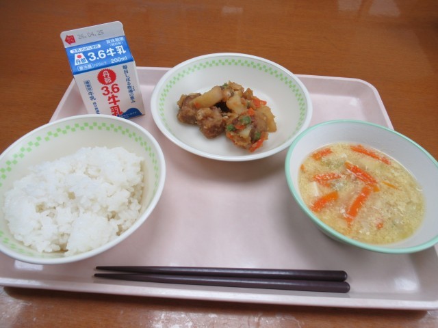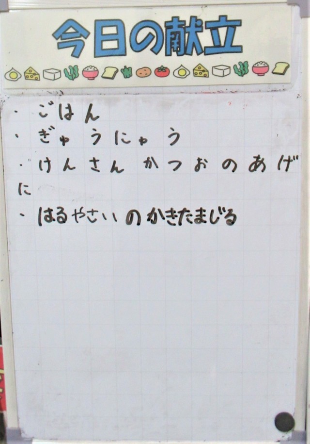 今日の給食は、「食育の日・ふるさと給食」ということで、静岡県産の食材を使ったメニューでした。特に県内産のかつおを使った「かつおの揚げ煮」はかつおにもよく味が染みていてとてもおいしかったです。