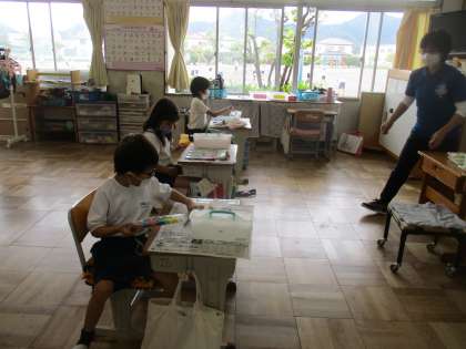 図画工作は、「おべんとうをつくろう」という絵の具の使い方の学習です。
