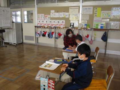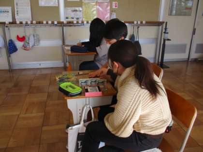 上の写真は、ブロックを使用してたし算の学習を行っています。
