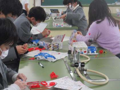 エナメル線を巻いたものをタイヤに付けて、電流を流すとタイヤが動くかどうか実験をしています。