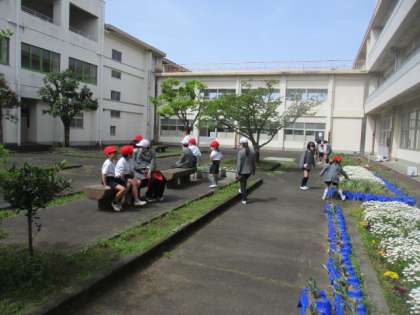 中庭で楽しそうに交流している姿が、とても微笑ましかったです。