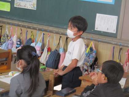 2年生の道徳の授業の様子です。登場人物の気持ちや表れについて、自分の経験と比べながら考えていました。たくさん発表する子たちがいて感心しました。