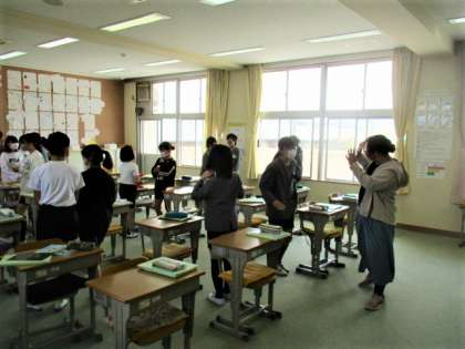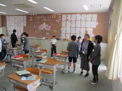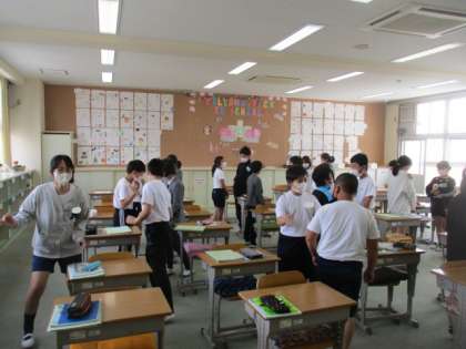 6年生の外国語の授業の様子です。「What food do you like?」「I like 〜」という英語で、クラスの友達に質問して答える活動をしていました。恥ずかしがることなく、楽しそうに話している姿がとてもいいなあと思いました。