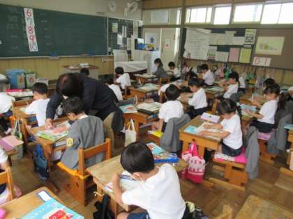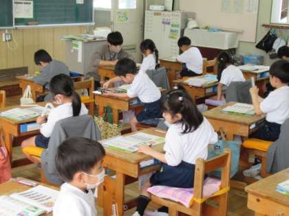 1年生も小学校生活が3週目となり、いろいろな学習にも意欲的に取り組んでいます。写真は算数の様子です。