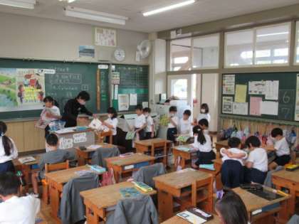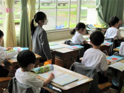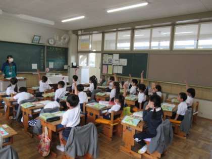 1年生の算数の授業の様子、続きです。手の上げ方もピンとしていて素敵です。