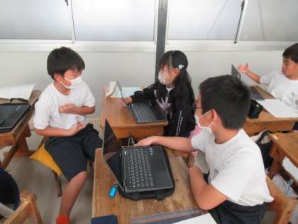 4年生の道徳の続きです。子供たちがじっくり考えたり、周りの友達と話し合ったりしている様子です。