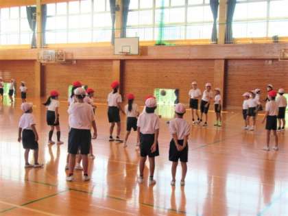 今回は、2・5年生のペアで遊びました。ただ、熱中症レベルが危険となり、運動場で遊ぶことはできませんでした。かろうじて体育館はOKだったので、水分補給の休憩を入れながら遊んでいるクラスもありました。