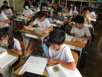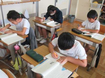 5年生の国語の授業の様子です。有名な「注文の多い料理店」を題材に、物語を面白くする工夫について、それぞれ考えていました。教科書をじっくりと読みながら一生懸命考えていました。