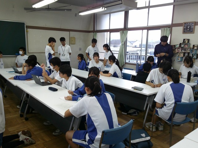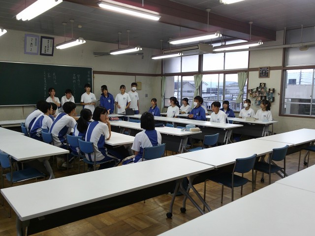 後期第1回の中央委員会を開催しました。最初に前期の生徒会役員と専門委員長にも参加してもらい、前期からの課題と仕事の引継ぎを行いました。その後、後期生徒会本部が後期のスローガンや取り組みについて説明しました。後期からは2年生が中心となって学校を引っ張っていきます。伝統を引き継ぎながら、新しいことにもどんどん挑戦してほしいと思います。