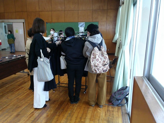 湧水祭体育の部終了後に制服リサイクル活動として、希望される方に制服やジャージなどをお譲りしました。たくさんの方に集まっていただき、リサイクルに寄付していただいたものの多くをお持ちいただけました。とても有意義な活動だったため、来年度も続けていきたいと思いました。