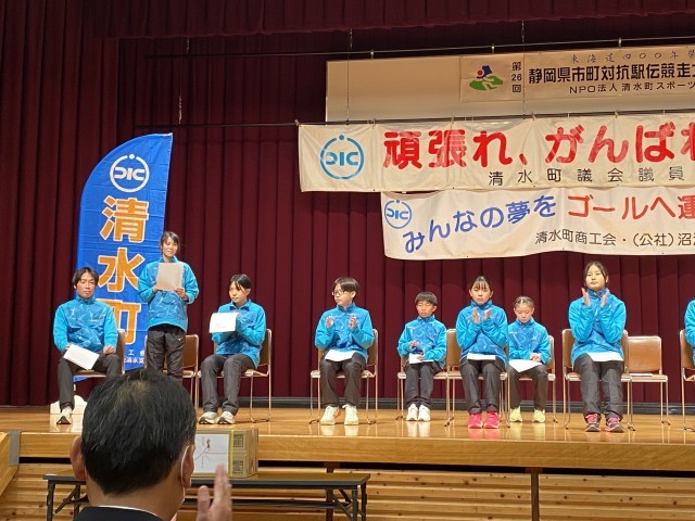 静岡県市町対抗駅伝の壮行会が行われ、本校から出場する4名の生徒も多くの町民の皆さんに激励していただきました。
