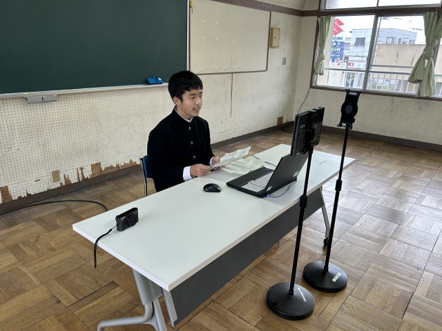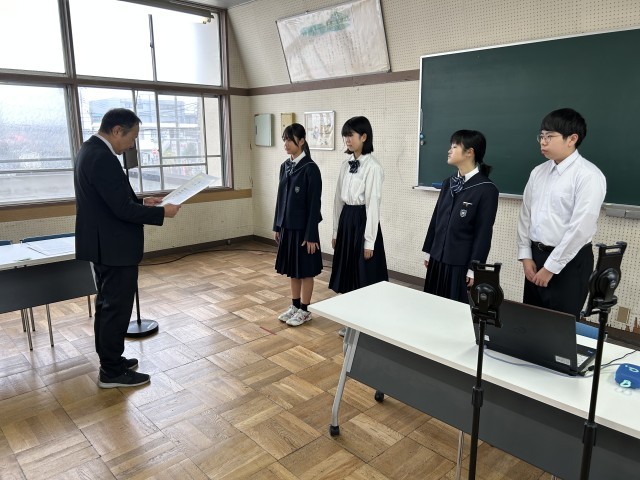 2025年最終登校日の本日、全校集会を行いました。教頭から今年のニュースベスト5の発表と新年に向けての心の作り方について話がありました。その後、生徒代表がこの一年の振り返りと来年の抱負を発表しました。また、環境美化委員長からは、新年を気持ちよく迎えるために、今年最後の清掃をがんばろうと呼びかけがありました。