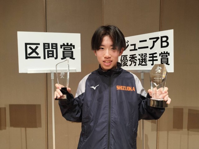 都道府県対抗男子駅伝において静岡県代表として本校の関響佑さんが2区を走りました。懸命の走りを見せ、2区区間賞とジュニアB最優秀選手賞を獲得しました。