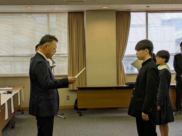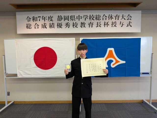 本校の関響佑さんが令和7年度静岡県中学校体育連盟の優秀選手賞を獲得しました。今日は静岡市で行われた授賞式に参加しました。色々な大会で清水町と静岡県の代表として活躍した功績が、多くの人に認められました。