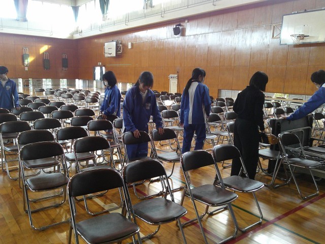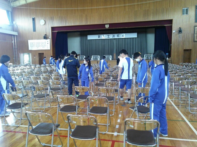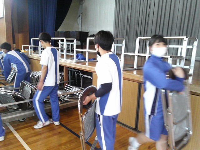 明日の新入生説明会に向けて会場の設営を行いました。2年生の生徒が素早く丁寧に会場を作ってくれました。放課後には生徒会の役員がリハーサルをするなど、明日の準備は万全です。清水中の生徒、職員全員が、明日来校する小学6年生を歓迎します。