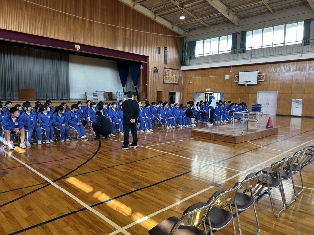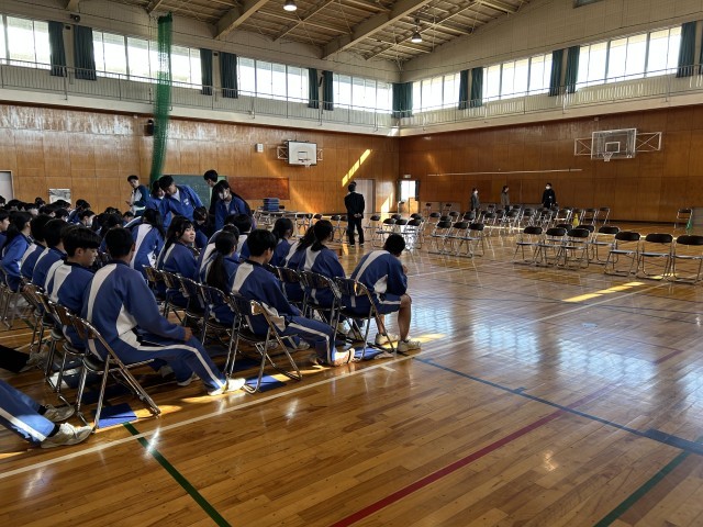 昨日に引き続き本日も静岡県の公立高校入試のため、3年生は進路が決定している生徒だけが登校しました。今日は体育館に椅子を並べて、卒業式の会場の様子を確認しました。今年度の卒業式は、昨年度と異なり保護者と生徒が対面する形になるため、座席の間隔や入退場の仕方も手探りの状態です。ここから卒業式までに練習を繰り返しながら、3年生と保護者の思い出に残る卒業式をつくりあげていきます。