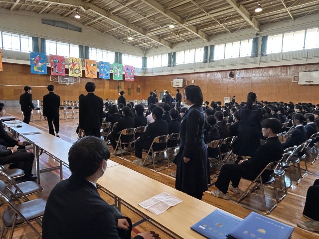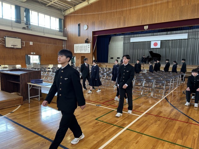 本日は卒業式の最終確認となる総練習を行いました。すべての3年生と教職員に加え、送辞と伴奏の担当をする2年生が参加して卒業式の流れを通して行いました。全体の動きの確認もしっかりとできたので、後は本番を迎えるだけです。3年生に関わるすべての人にとって最高の卒業式になることを確信しています。