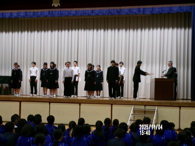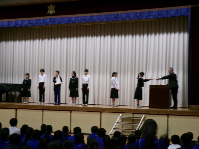 また、後期生徒会執行部、専門委員長、学年委員の任命式がありました。