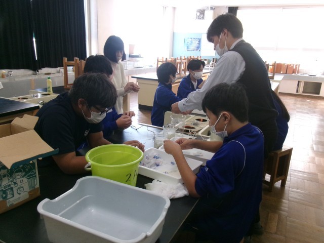 5組では、牛乳パックを使って、紙すきをしました。