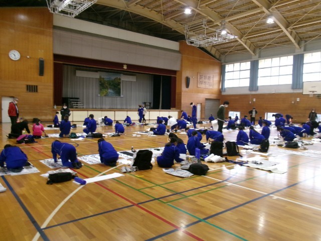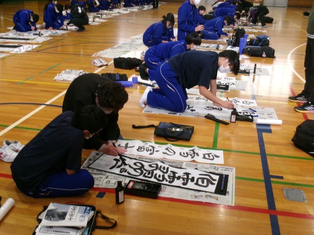 底冷えがする体育館の中でしたが、どの生徒も集中して取り組み、堂々とした悪品を仕上げていました。