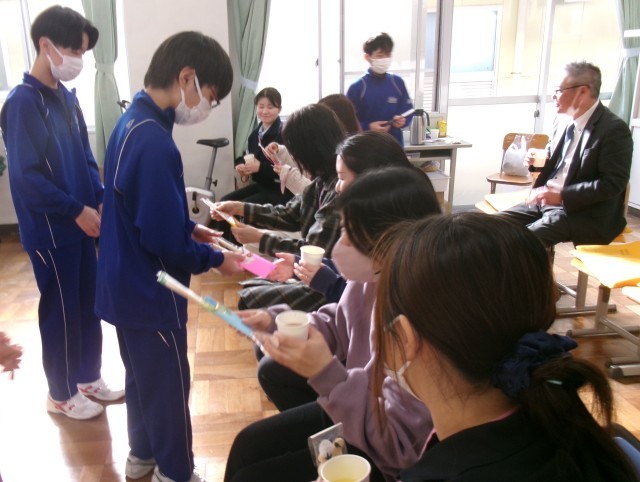 2日間とも多くの教職員が来店し、温かいドリンクとともに、5組の皆さんのおもてなしを受けました。