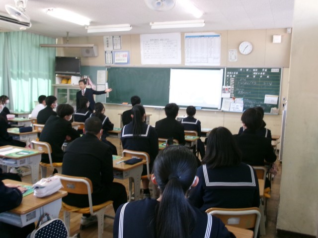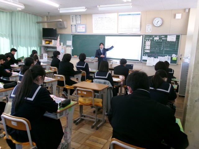 高校の先生から実際に話を聞く機会はなかなかないこともあり、生徒も真剣に聞く様子が見られました。