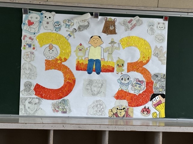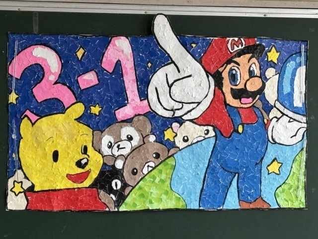 美術の時間の卒業制作として各クラスが制作をしました。どのクラスの作品も個性があって素敵です。