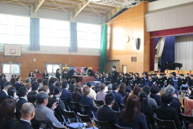 どの生徒も旅立ちの門出に緊張と自信あふれており、呼名に対して大きな返事をして卒業証書を受け取ることができました。ここまでの3年間の成長感じられる立派な姿で式を終えることができました。