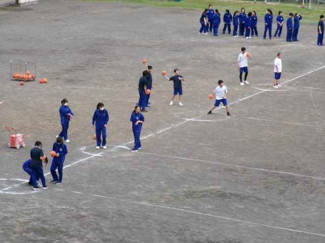 3年生は、3学級合同で、新体力テストを実施しました。全力疾走を行ったり、力いっぱいハンドボールを投げたりと、一生懸命に取り組んでいました。