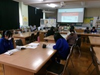 さて、南中の授業ですが、本格的にスタートしています。今回は、美術の授業風景を掲載します。今日の授業のめあては、「三原色を利用して12色相環を完成する」です。南中および清水町では、「授業のめあて」を赤枠で囲み、生徒たちが意識して取り組めるようにしています。