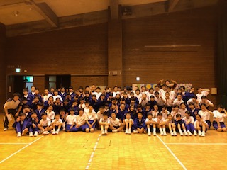 絆を表現する発表会では1年A組が優勝しました。そのあとで学年集合写真を撮りました。
